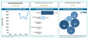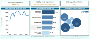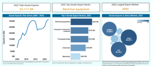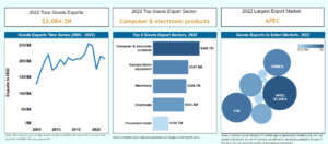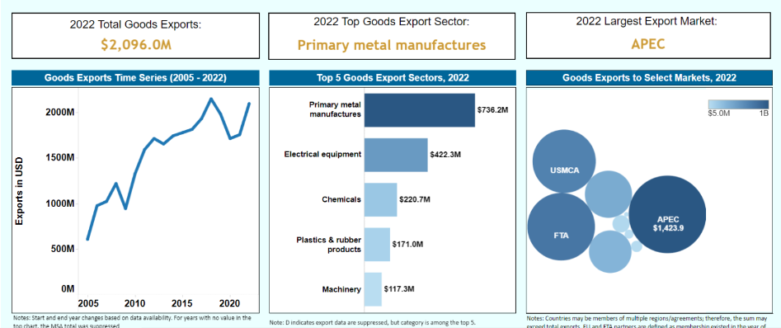 This report gives a snapshot of southcentral Pennsylvania’s export growth in 2022. Every year when the International Trade Administration releases their “Metropolitan Export Series” data, we summarize the information for our region. This provides a comprehensive analysis of where our region lies in relation to the rest of the State’s exports. The southcentral region of Pennsylvania encompasses seven Metropolitan Statistical Areas (MSA), including Chambersburg-Waynesboro, Gettysburg, Harrisburg-Carlisle, Lancaster, Lebanon, Reading, and York-Hanover. These numbers are reported in millions of US dollars.